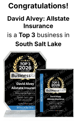 David Alvey – Allstate Insurance has been officially recognized as a TOP 3 Insurance Agency in South Salt Lake for 2025, based solely on verified Google Review data. This award, certified by BusinessRate, highlights our commitment to customer satisfaction, trust, and excellence in service.